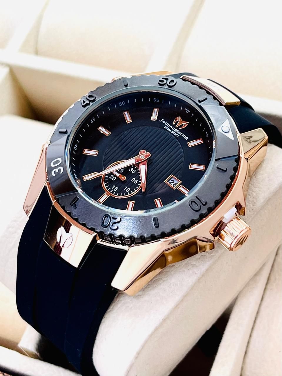 ⌚ RELOJ CABALLERO Technomarine – ¡Elegancia y Estilo! ✨ Características ✔ Hora análoga ✔ Calendario funcional 📅 ✔ Segundero lateral ⌛ ✔ Pulso en silicona 🔝 ❌ No Sumergible